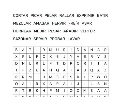 Juego de palabras de cocina