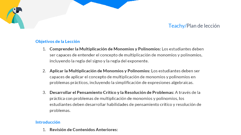 Multiplicación de Monomios y Polinomios: Objetivos y Aplicaciones en el Aprendizaje Matemático