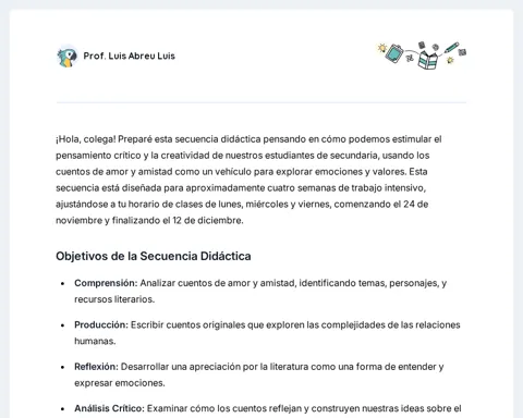Secuencia didáctica: Amor y amistad a través de cuentos