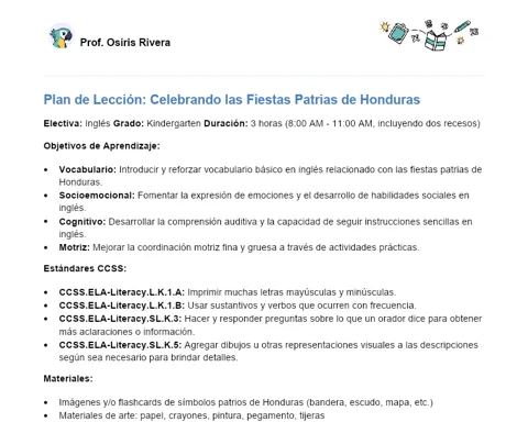 Celebración de las Fiestas Patrias de Honduras en Inglés