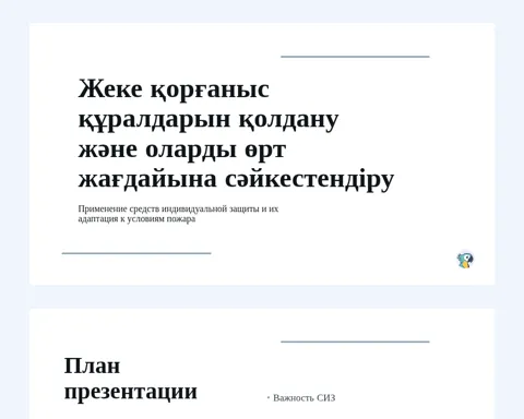Жеке қорғаныс құралдарын қолдану және оларды өрт жағдайына сәйкестендіру