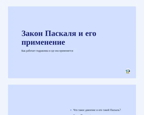 Закон Паскаля и его применение